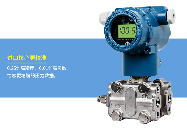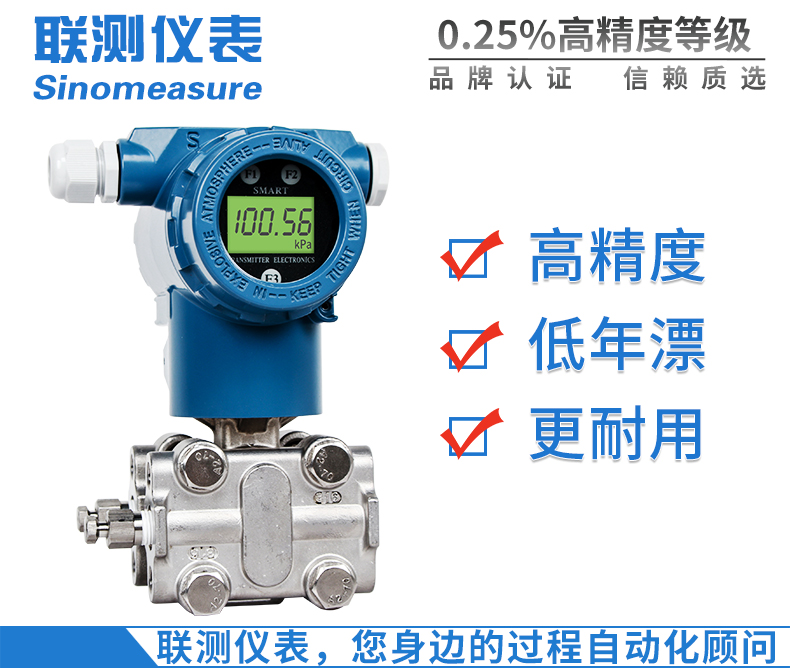 SIN-3051系列壓力變送器利用差動電容檢測的原理,當(dāng)膜片兩側(cè)壓力不一致時,使容室中測量膜片產(chǎn)生位移,其位移量與壓力差成正比