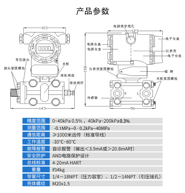 SIN-3051系列壓力變送器利用差動電容檢測的原理,當(dāng)膜片兩側(cè)壓力不一致時,使容室中測量膜片產(chǎn)生位移,其位移量與壓力差成正比,通過電路處理將電容變化量轉(zhuǎn)換成4~20mA的二線制電流或電壓信號,可帶上458協(xié)議或者HART通訊協(xié)議功能。該變送器具有堅固抗振,量程,零點和阻尼現(xiàn)場連續(xù)可調(diào)。
