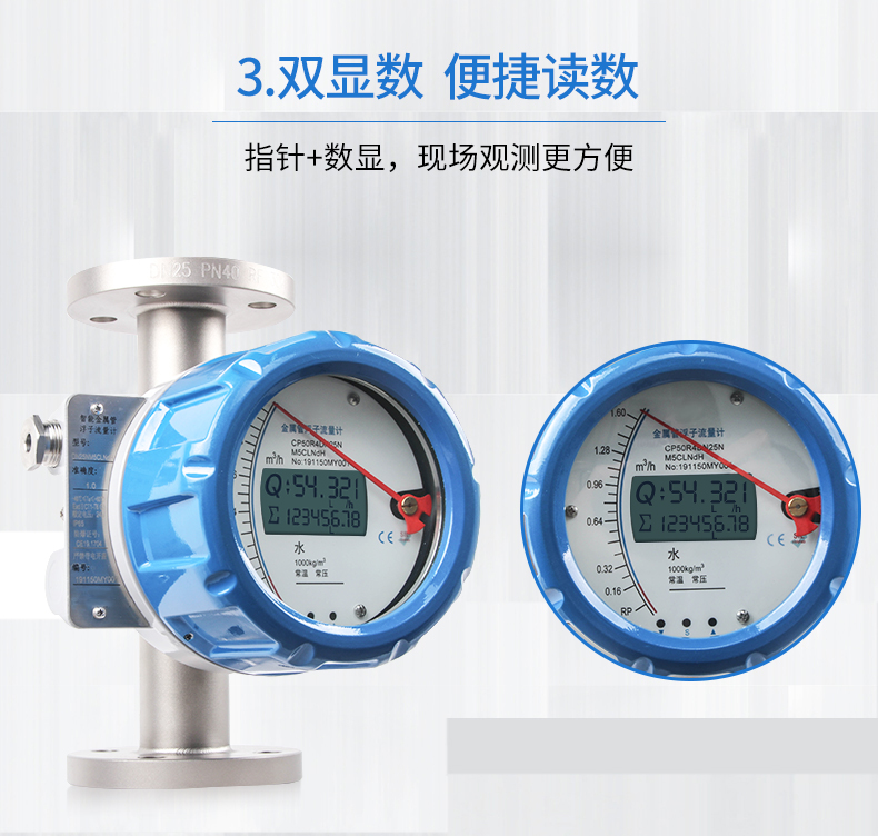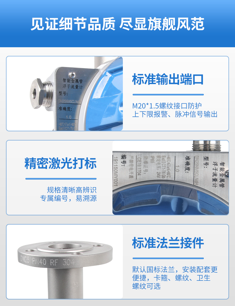 金屬管浮子流量計(又稱金屬轉子流量計)具有結構簡單、工作可靠、適用范圍廣、精度較高、安裝方便等特點。該系列流量計與玻璃轉子流量計比較,具有耐高壓、高溫、安全感強、讀數簡明等特點。并可適用于不透明介質和腐蝕性介質的流量測量。金屬管浮子流量計為變面積式流量計,即在流量計的垂直測量管中,當流體向上流經管子時。浮子向上移動,在某一位置浮子所受升力與浮子重力達到平衡,此時浮子與孔板(或錐管)間的流通環隙面積保持一定。環隙面積與浮子的上升高度成比例,即浮子的某一高度代表流量的大小。