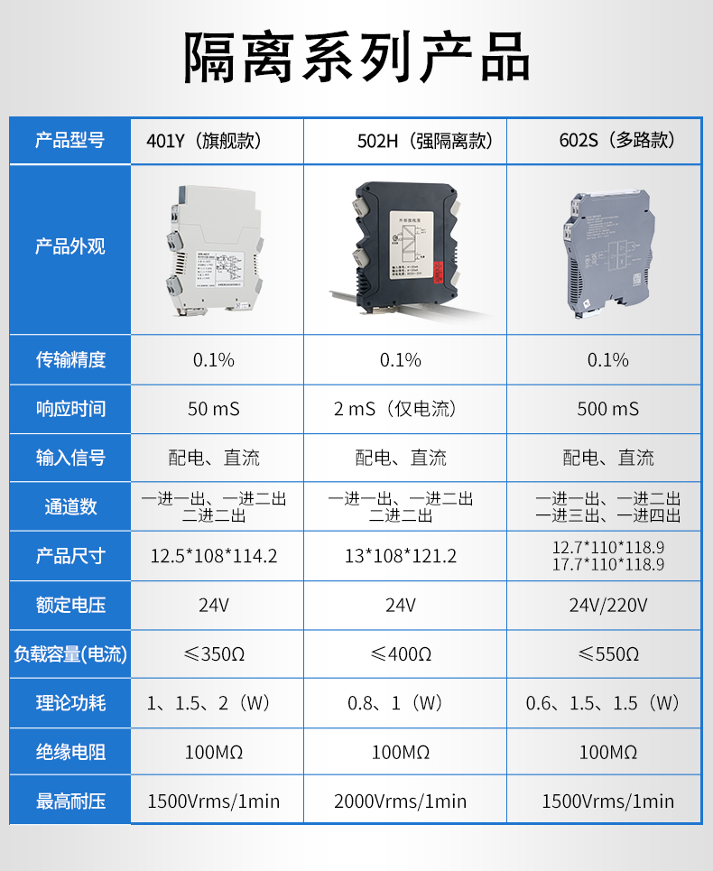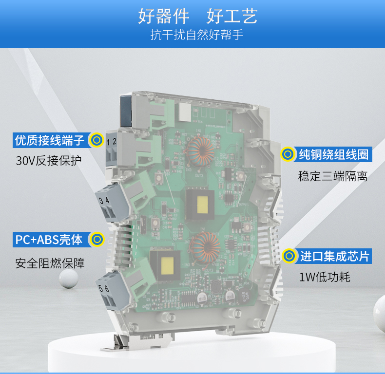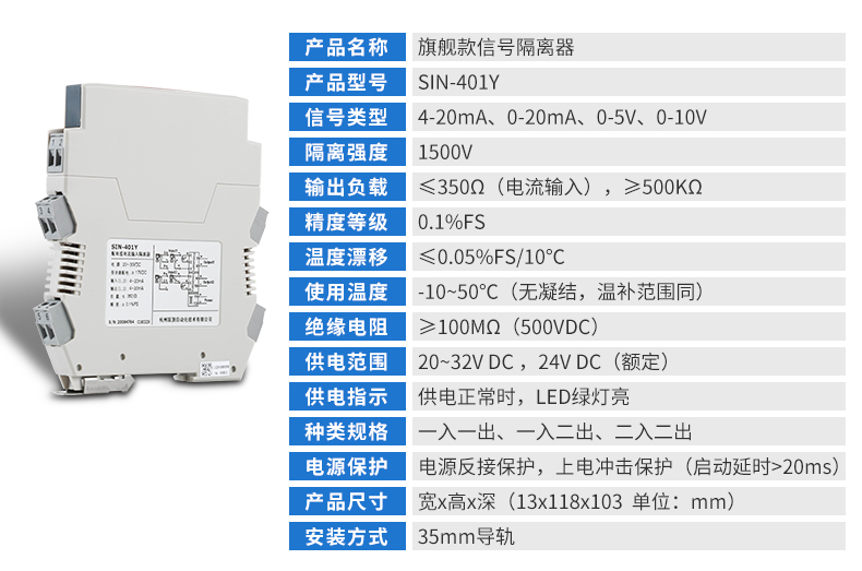 信號隔離器是一種信號隔離裝置,將輸入單路或雙路電流或電壓信號,變送輸出隔離的單路或雙路線性的電流或電壓信號,并提高輸入、輸出、電源之間的電氣隔離性能。