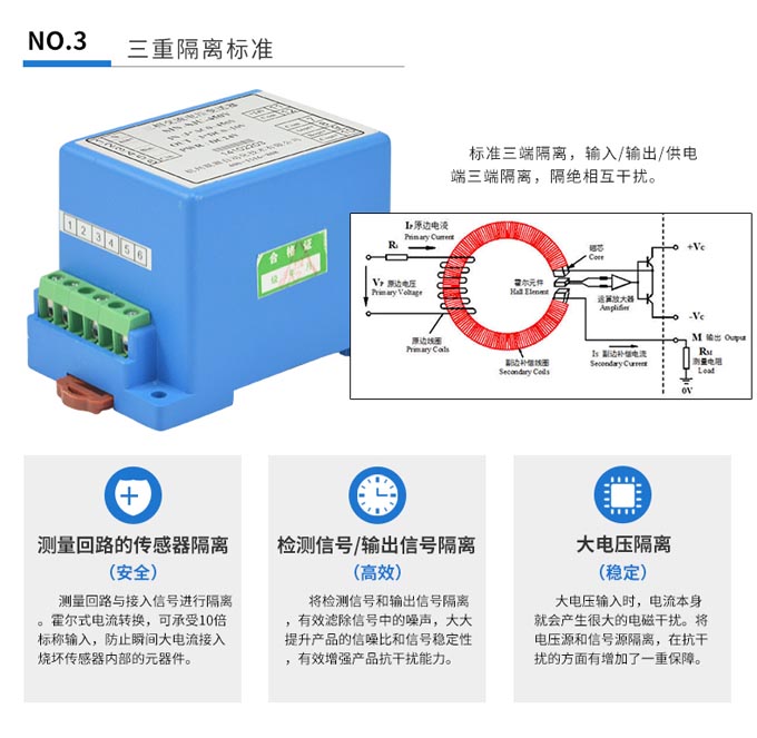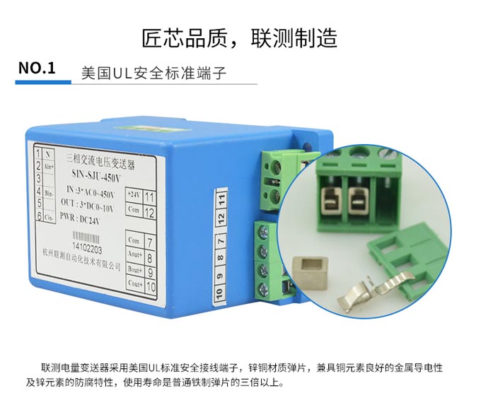 三相電壓變送器采用新型電磁隔離,三相三角形接法交流電壓輸入,用于測量三相三角形接法交流電壓,特別使用于工頻50Hz正弦波三相三角形接法交流電壓
