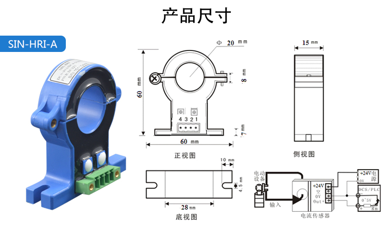 電流變送器可以直接將被測主回路交流電流或者直流電流轉換成按線性比例輸出的DC4~20mA(通過250Ω 電阻轉換DC 1~5V或通過500Ω電阻