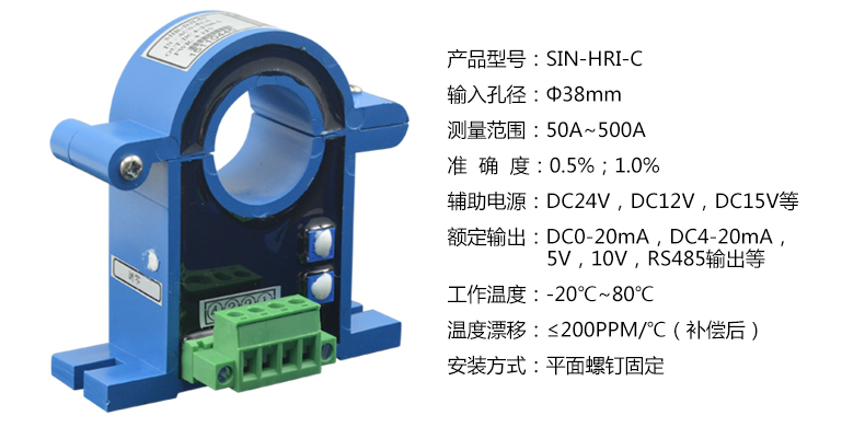 電流變送器可以直接將被測主回路交流電流或者直流電流轉換成按線性比例輸出的DC4~20mA(通過250Ω 電阻轉換DC 1~5V或通過500Ω電阻