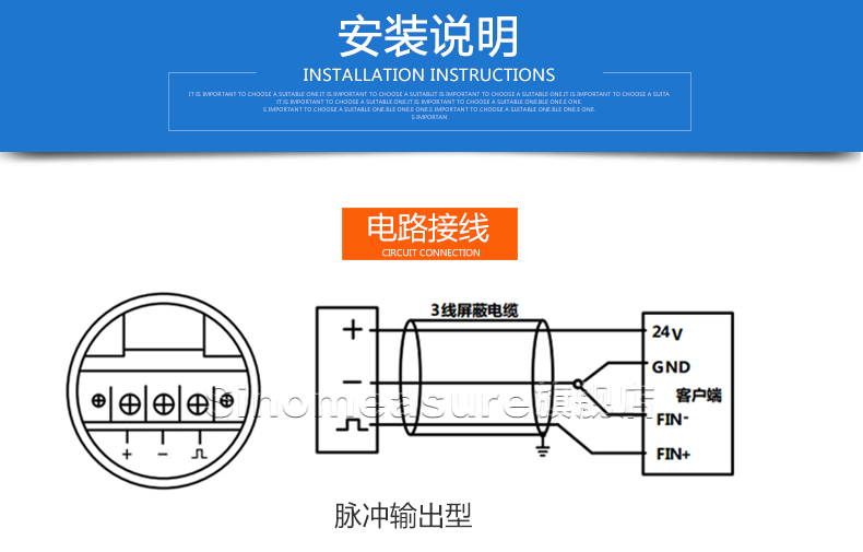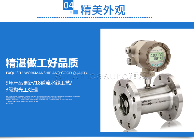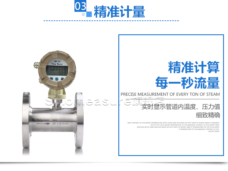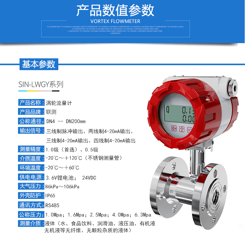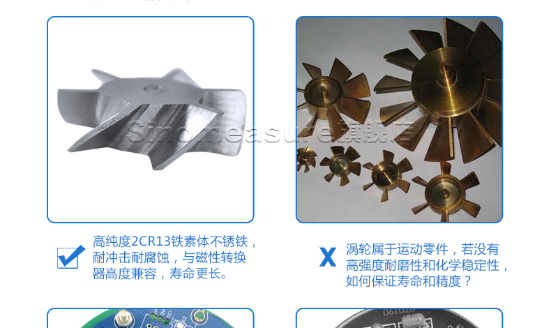 流體流經(jīng)傳感器殼體,由于葉輪的葉片與流向有一定的角度,流體的沖力使葉片具有轉(zhuǎn)動(dòng)力矩,克服摩擦力矩和流體阻力之后葉片旋轉(zhuǎn),在力矩平衡后轉(zhuǎn)速穩(wěn)定,在一定的條件下,轉(zhuǎn)速與流速成正比,由于葉片有導(dǎo)磁性,它處于信號(hào)檢測(cè)器(由永久磁鋼和線圈組成)的磁場(chǎng)中,旋轉(zhuǎn)的葉片切割磁力線,周期性的改變著線圈的磁通量,從而使線圈兩端感應(yīng)出電脈沖信號(hào),此信號(hào)經(jīng)過(guò)放大器的放大整形,形成有一定幅度的連續(xù)的矩形脈沖波,可遠(yuǎn)傳至顯示儀表,顯示出流體的瞬時(shí)流量或總量。