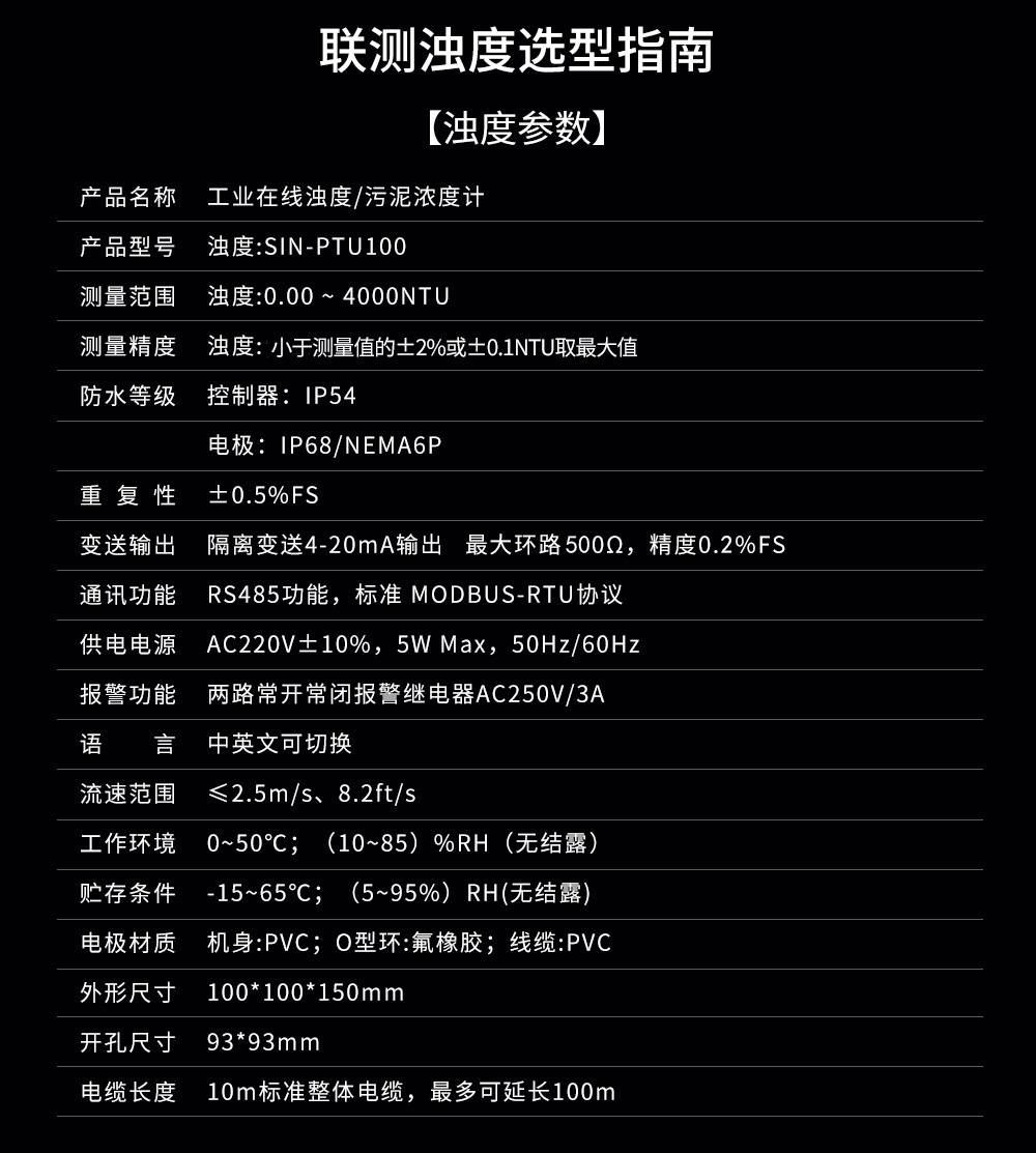 SIN-PSS100傳感器基于組合紅外吸收散射光線法,應用ISO7027方法可以連續測定污泥濃度。