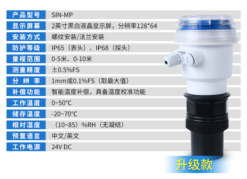 您的位置: 首頁 > 超聲波液位計 >聯測_SIN-MP_升級款2年質保_0.5%精度_污水處理專用_